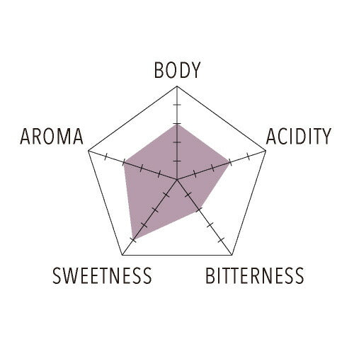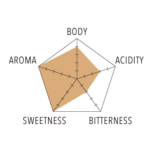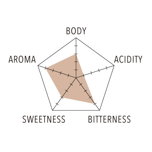 風味が弱くなりがちな、カフェインレスを美味しく飲んで頂くため、深煎りに仕上げました。 そのままでも、ミルクを入れても、楽しんで頂ける味わいになっています。