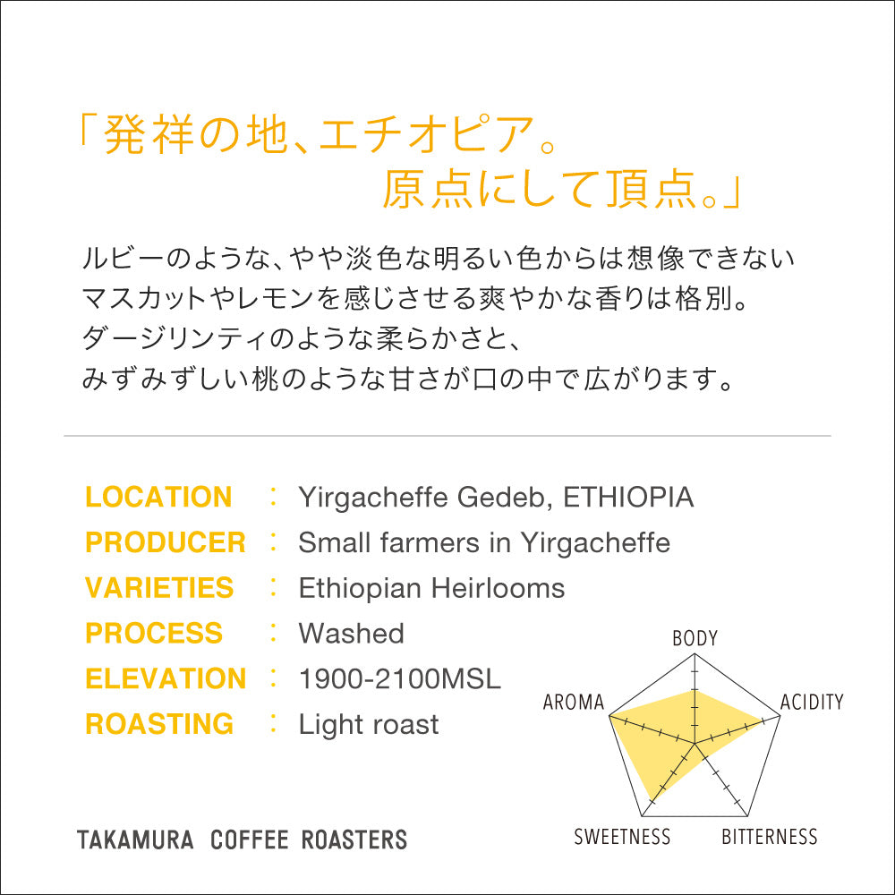 エチオピアのコーヒーは小さな小規模農家単位で収穫され、近くの水洗工場で精製処理が施され、輸出されます。
