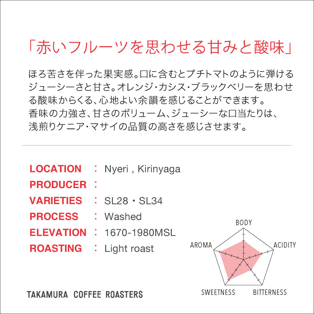 ケニアの大地の恵みをたっぷりと受けた、風味豊かなコーヒーをお楽しみください。